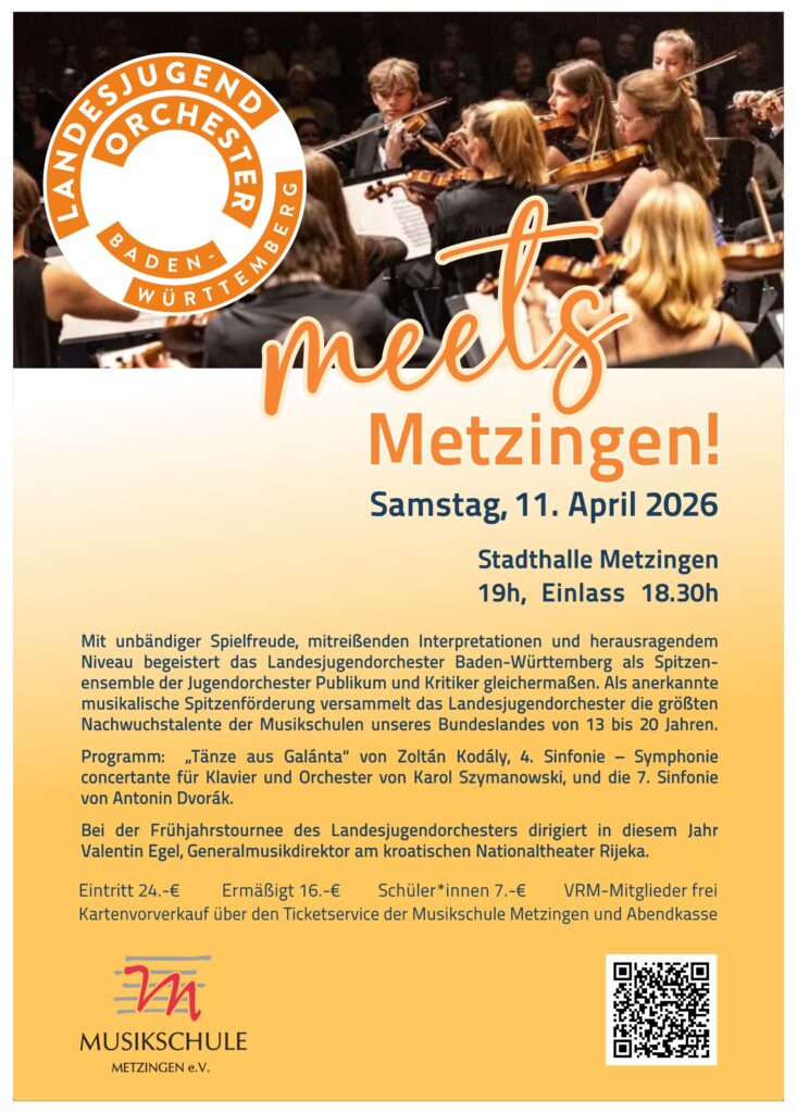 Karten: Ticketservice der Musikschule Metzingen und an der Abendkasse.